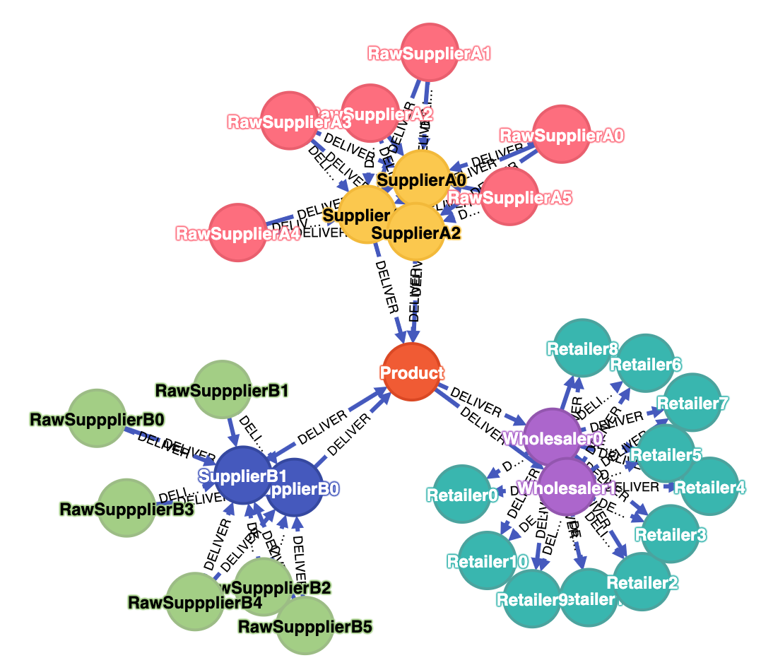 Due to the nature of supply chains, which is inherently a graph or network structure, graph databases and algorithms are more suitable to monitor, maintain and model supply chain problems e.g. Risk Management, Transport Optimization, and quality assurance.