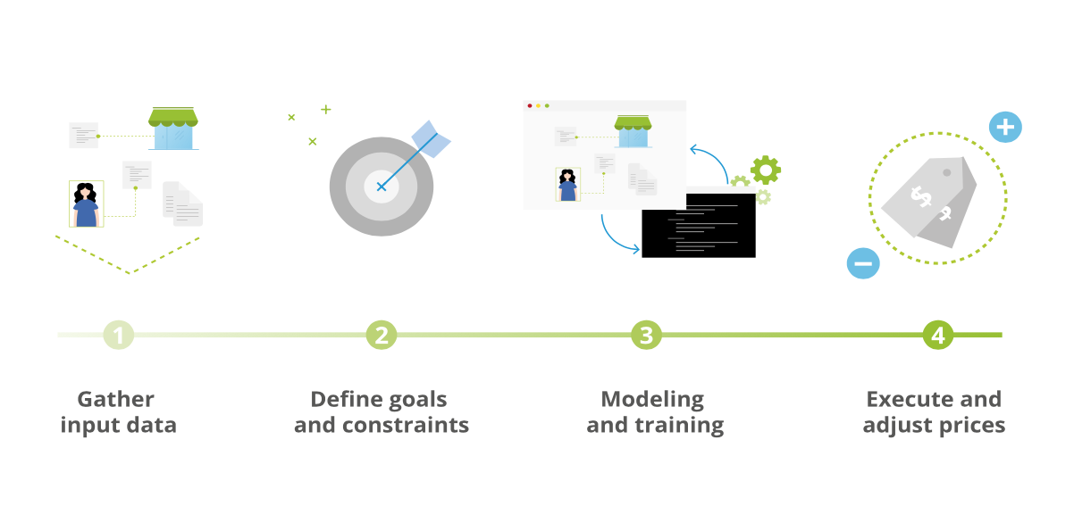 It is important to define the strategic goals and constraints. Retailers may pursue a unique, clear objective of profit maximization. However, they may also be interested in customer loyalty (e.g. increasing the net promoter score or the conversion rate) or in attracting a new segment (e.g. young people). Price optimization with ML has clear advantages. First of all, it is automation and speed of all predictions. Second, ML models can consider a huge number of products and optimize prices globally. For example, it is known that changing the price of a product often impacts the sales of other products in ways that are very hard to predict for a human. In most cases, the accuracy of a ML solution will be significantly higher than that of a human. In addition, retailers can modify the KPI and immediately see how the models recalculate prices for the new goals. Third, by analyzing a large amount of past and current data, a ML can anticipate trends early enough. This is a key issue that allows retailers to make appropriate decisions to adjust prices. Finally, in the case of a competitive pricing strategy, ML solutions can continuously crawl the web and social media to gather valuable information about prices of competitors for the same or similar products, what customers say about products and competitors, considering hot deals, as well as the price history over the last number of days or weeks.